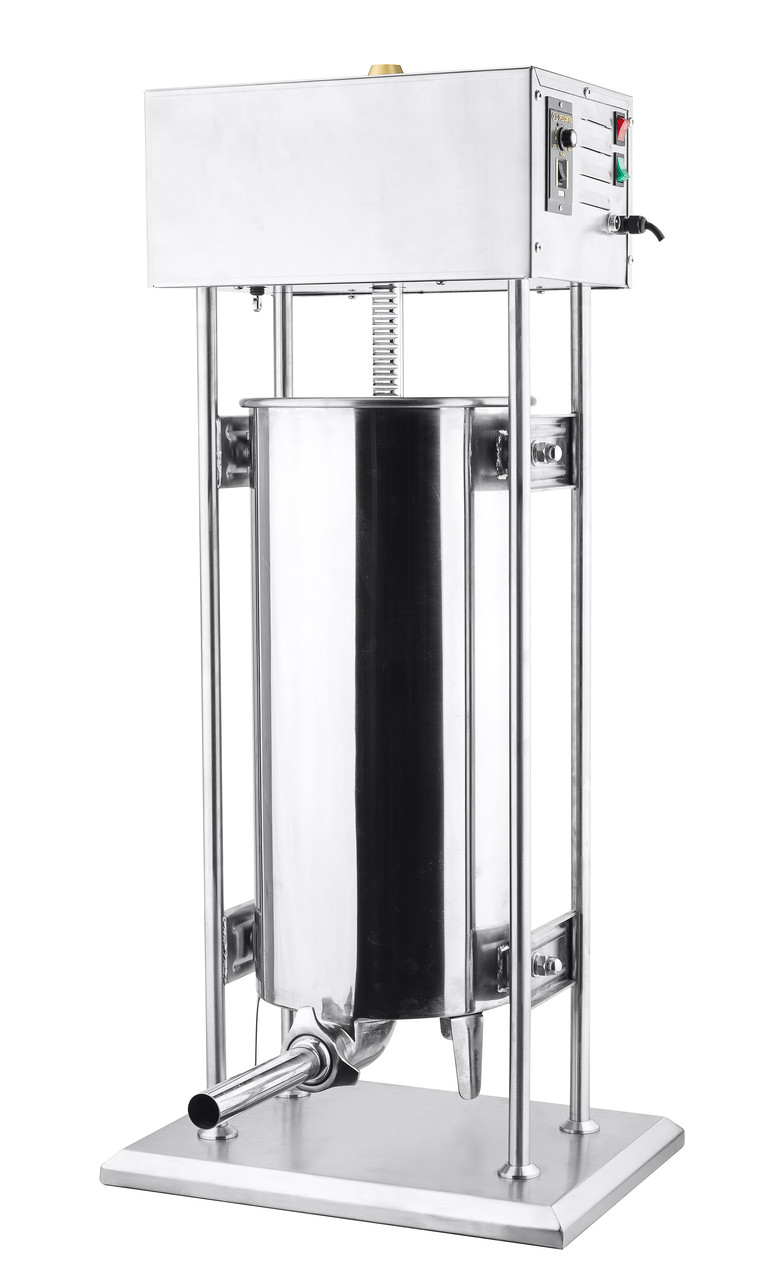 Шприц для наповнення ковбаси електричний вертикальний виготовлений повністю з неіржавкої сталі. У комплекті з 4 різними насадками з неіржавкої сталі.